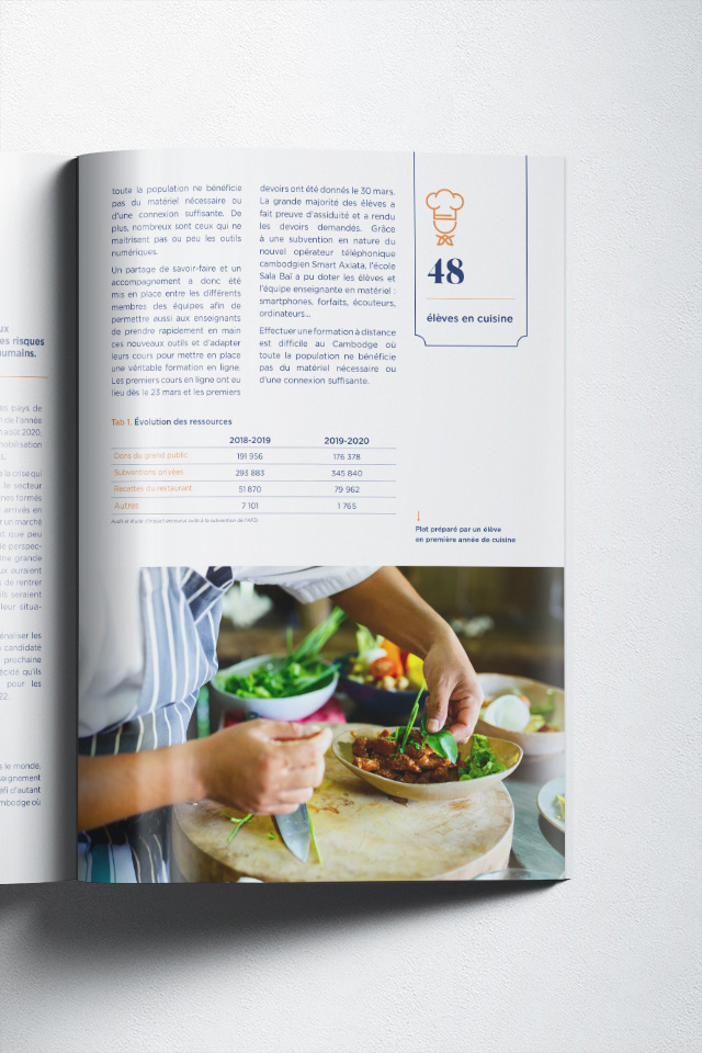 J'ai réalisé la mise en page du rapport annuel 2019-2020, en français et en anglais. Ce document est un outil indispensable pour l'organisation car il lui permet de promouvoir son travail auprès de ses différents partenaires et du public, et pérenniser ainsi son action au fil des années.